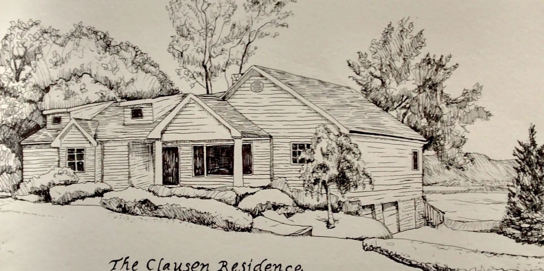 Pen and ink drawing of clients previous home. 14 x 11 inches