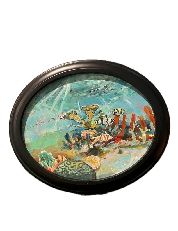 Tropical reef painting for an aquarium themed room 24 x 18 in